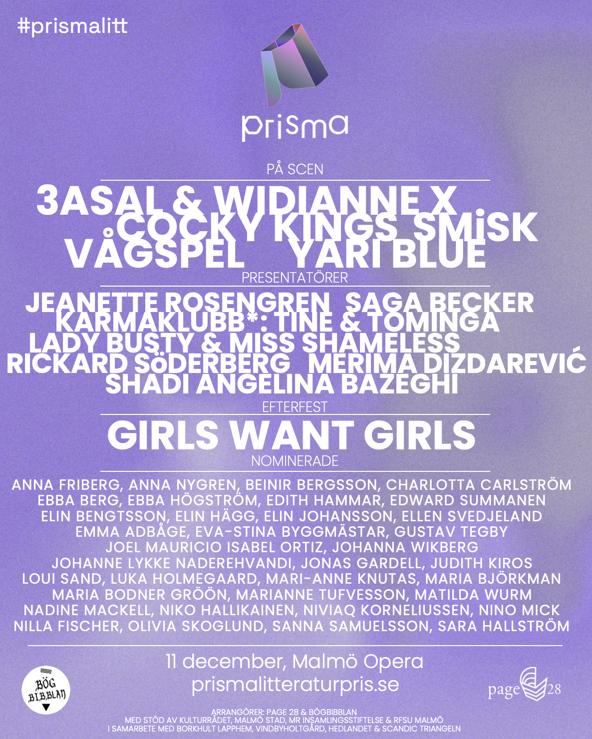 2023 grundade jag Prisma Litteraturpris tillsammans med Lou Mattei. Priset prisar nordisk queer litteratur och skapar mötesplatser för queerlitterära aktörer. I november 2025 delar vi ut Prisma Litteraturpris för tredje gången.