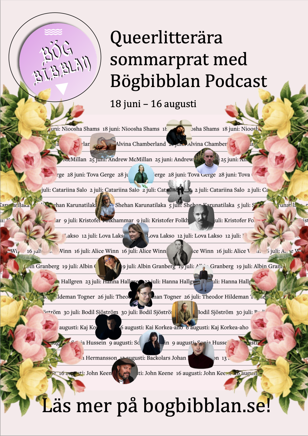 2018 började jag skriva om queera böcker på ett Instagramkonto som jag döpte till Bögbibblan. 2020 anslöt sig Milla Leskinen och sedan dess har vi poddat, arrangerat litterära fester, besökt bokmässor, bibliotek och festivaler, gett ut ett fanzine, S.N.U.S.K., och mycket mer.